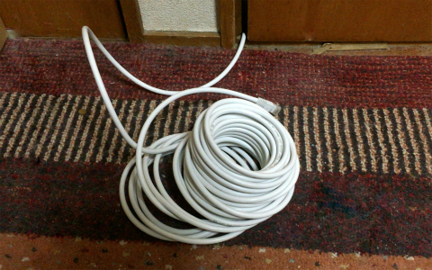 しかし、急遽、息子に頼んだので「シンプル」に「20mのLANケーブル」と言って買いに走って貰いました。