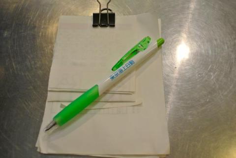 今日のお昼時に、カウンターに座られていた若い研究者が「ペンを貸してください。」と。