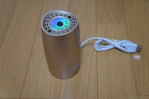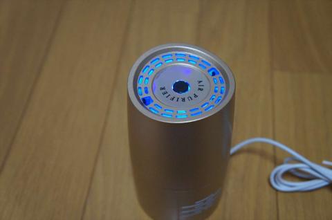 真ん中に電源ボタンがあり、使用時には、ブルーのLEDが点灯します。