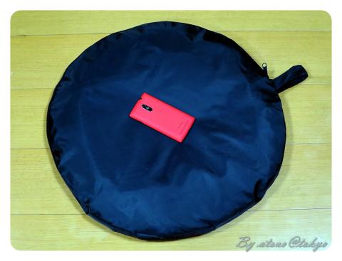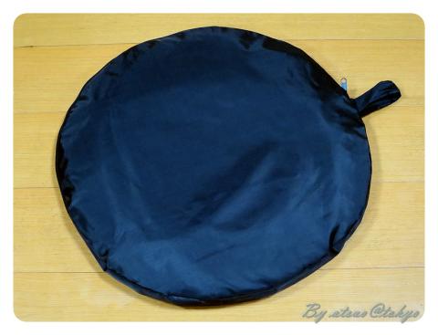 8の字に捻って収納するタイプですので、収納時には直径 50cmの円形カバーに収まります。