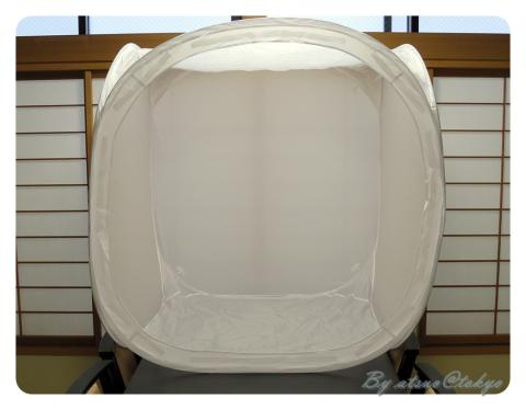 現在常用している 80cmの撮影ボックスは各面・フレームがしっかりしていたので机からはみ出ていても安定していましたが、