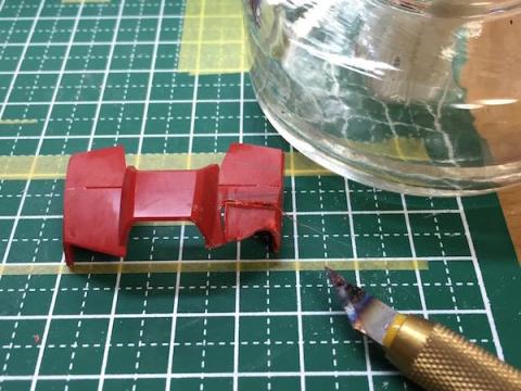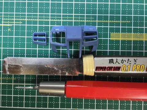 赤いパーツはレッド・ゼータのパーツです。ガッツリ切断するためナイフを加熱して切断。