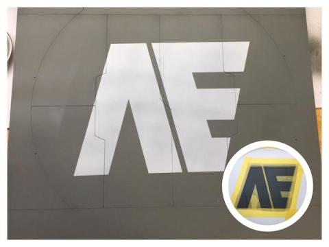 プラ板に筋彫して、塗装後マスキングし企業ロゴを入れてみました。