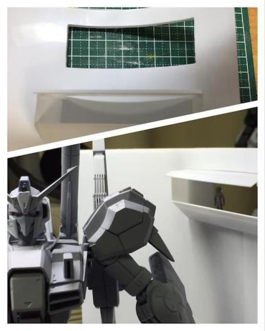 壁面には見晴台を設置しました。バランスを見るために1/100ジオン兵を置いてあります。