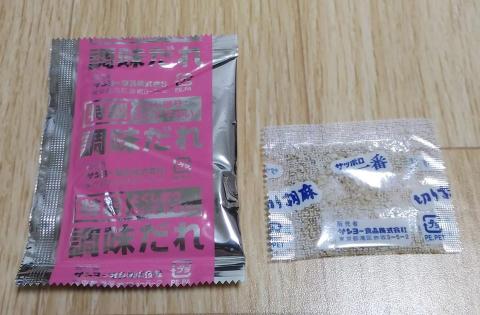 付属品は特製の調味だれと、塩らーめんでおなじみの白ごま。