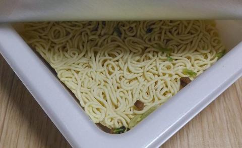 見かけは普通のカップ焼きそば。具もキャベツと多分肉。
