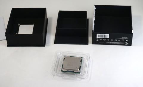 この黒箱に金文字!以前ExtremeEditionは黒系のパッケージもあったが、i7-5960Xでは下位モデルと共通デザインの青系パッケージだった。今度は文句なし高級感抜群の黒箱!なんかサラサラしていて気持ちがいい。