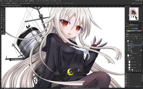8700*12000px以上という無駄解像度に120以上のレイヤーを使った500MBのPSDファイル。ファイルを開くだけでシークバーが出る嫌がらせみたいなPSDだが、フォトショを起動していない状態からそのファイルを開くまでの時間を計測。更にそのファイルをレイヤー統合したものをPNGで保存したときの時間。ぼかしフィルタを極端にかけた時の時間を(ストップウォッチで)計ってみた。