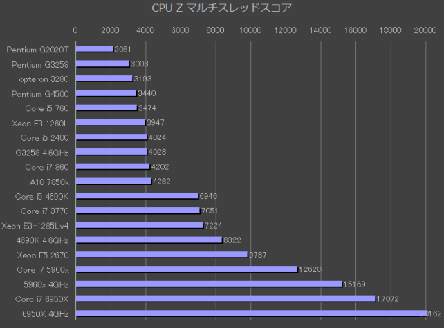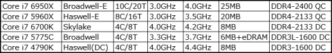 ざっとスペックを比較。今回比較できるのはi7-5960Xだけなので下の3つは参考で。