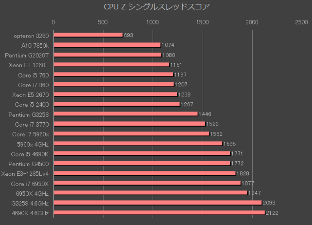簡単にだがゲーム系のベンチや動作をi7-5690Xと比べてみよう。テスト環境はこちら。Haswell世代のi5-4690K(定格)とSkylakeなPentium G4500も計測したが、i5-4690KはOSも異なる点に注意。