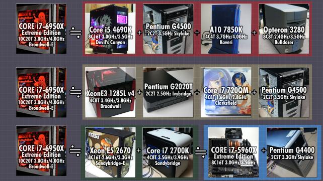内容は実に単純。i7-6950Xが得意とするマルチスレッドフル稼働のエンコード。それと同じくらいの時間でエンコードを実現するには自分の手持ち自作PCが何台必要なのか。