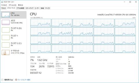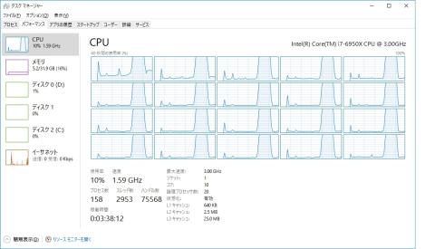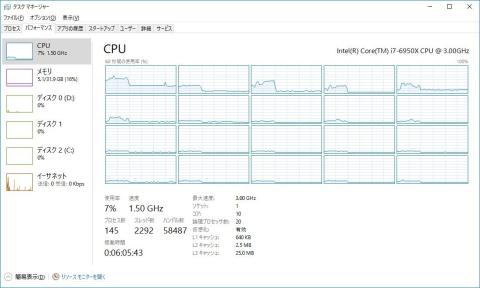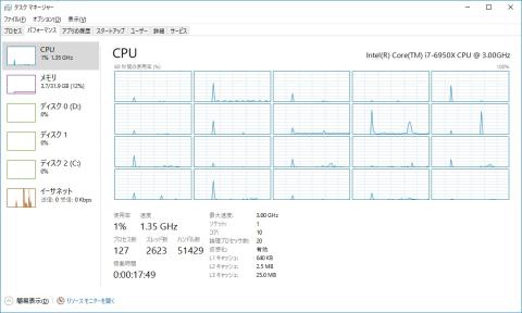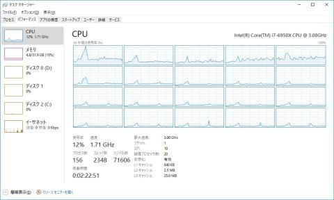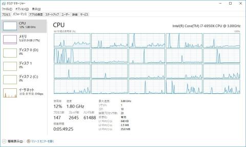 タスクマネージャーに表示されるCPUの窓も20個表示されていて、もはや壮観としか言いようがありませんね。