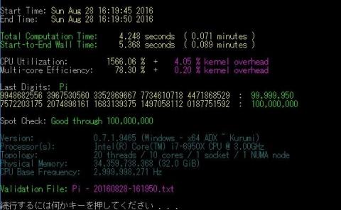 以前Core™ i7-4960Xのレビューの時に行った円周率1兆桁。