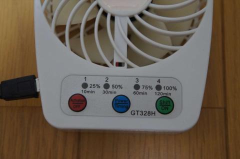 一番右のボタンを長押しすることで、回転し始めます。回転数は、4段階で調整可能。結構な風量があります。