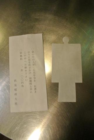 伏見稲荷大社では、いちまいのひとがたに対して百円のご寄進が的とされています。