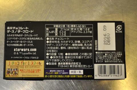 昭和からお馴染みの「板チョコ」ではなく、パッケージの中できちんと12個に小分けしてある形でお馴染みの森永ダースが、ダークサイドと手を組んで企画発売している