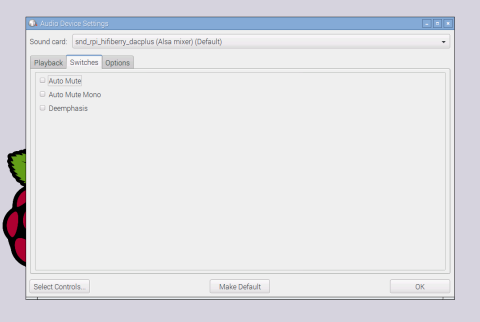 右上のスピーカーアイコンを右クリック、「External Device Settings...」を選択して「Sound Card」を選択してから「Select Controls...」をクリックします。