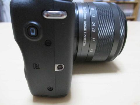 本体上部のボタンは奥から電源スイッチ+モードスイッチ、シャッター+電子ダイヤル、