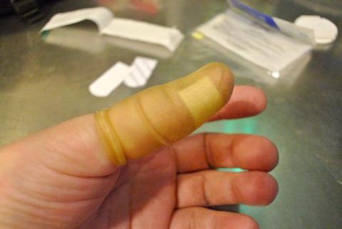 ラテックスゴム製の指サックは、強力な防水性能を有しますが、傷口を早期治癒するためには逆効果です。 蒸れてふやけちゃいますから。