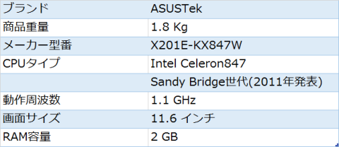 まずは、ノートPCのスペックです。紹介するのも恥ずかしい古さです。