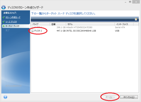 今回は自動でおまかせしちゃいました。⑤ソースディスクの選択