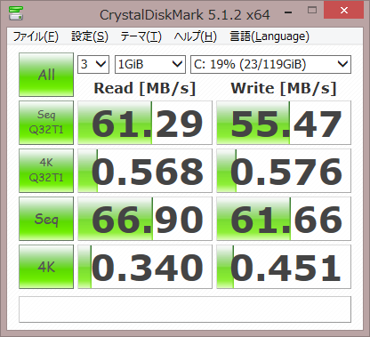 仕事で使用している低スペックPCなのでゲーム等のベンチマークは動きませんが、データの転送速度とOfficeの起動時間を比較してみました。
