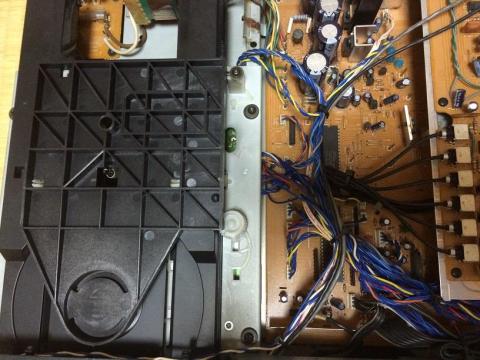 画面左はドライブメカ、プラスチック成型で安っぽい。SONYのESシリーズなどアルミダイキャストでがっちり作られているのと比較すると、これで\138,000ってナイんじゃない?とも思えます。