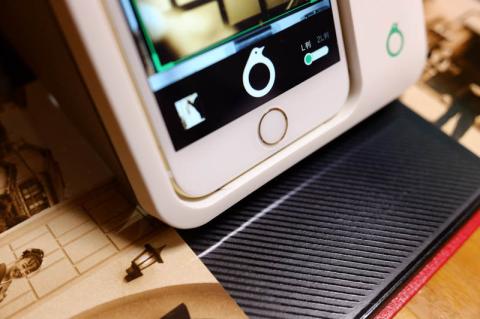 では実際にスキャンしてみます。iphone6Sに専用アプリをダウンロードして機械にセットします。ちなみに単3電池2本が必要です(2本はお試しということで添付されています)