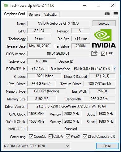 現在のGPU-Z Ver. 1.11.0 だとGTX1070の ASIC Qualityは検出してくれないみたいです。