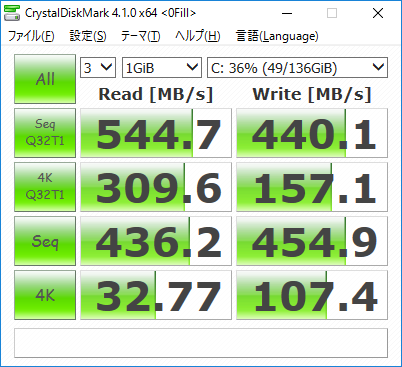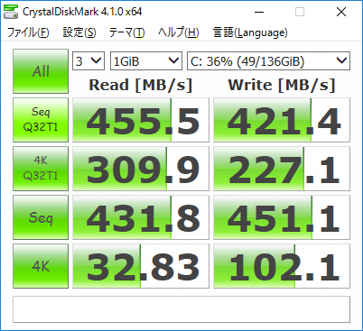 ということで標準搭載のHDDから相当早くなっているのがおわかりだろう。