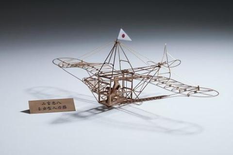 それから2年の後にゴム動力によるカラス型飛行器の模型を製作し、3mの自力滑走の後、離陸して10mを飛行させて、日本初のプロペラ飛行実験を成功しております。