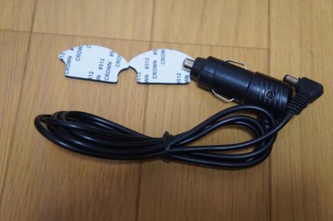 シガーソケット用電源ケーブル、粘着テープが付属しています。