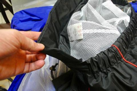 またモーターサイクルライダーの為に、ウエスト部、脛部、袖部にベルクロテープを利用した「絞り機能」がありますので、使いながら最適値を探すと良いと思います。