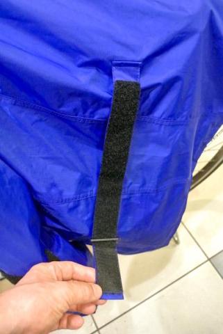 付属のウエスト部と袖部、脛部に備わるベルクロテープを上手く締めてやることによってバタ付きを上手く抑える性能を実感しました。