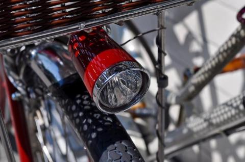 ボタン電池と太陽電池の2段構えのLEDランプが装備されており、周囲の明るさと振動を感知して自動点灯する後尾灯が備わります。