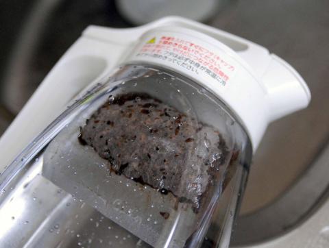 蓋を開けてみると、ボタンを押すとこの部分が開いて中のお茶が注がれる仕組みになっています