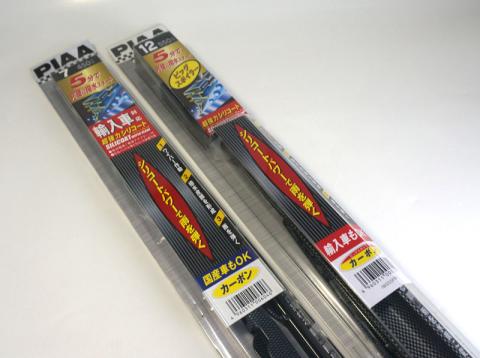 PIAAのビッグウイングワイパー(カーボンカラー)に。なんかゴム自体も撥水コートする能力があったりするようだがぶっちゃけ使用頻度が低いので普通なゴムで見た目が派手なだけでもよかったんだけど。ちなみに輸入車対応とあるが輸入車用の留め具が付属しているだけなので当然国産車にもOK。