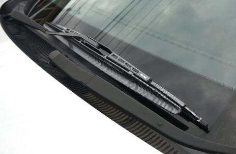 元からついていた一般的なワイパーに比べると助手席側はロゴとカーボンカラーで気持ち変わった程度だが運転席側は明らかになんか増えた感。