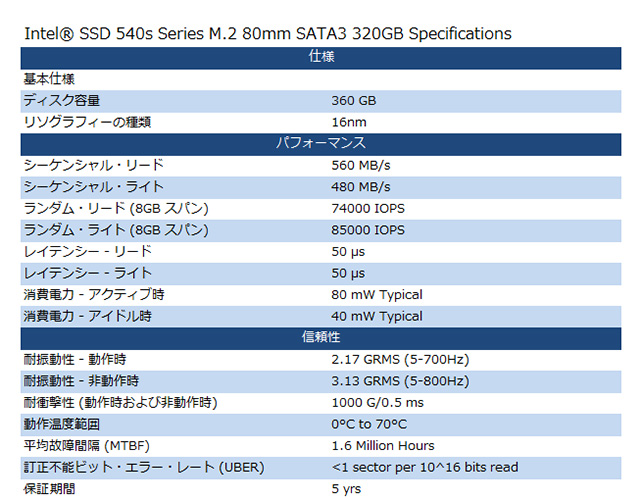 仕様は、インテル(R) SSD 540sシリーズ共通の仕様です。