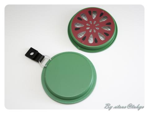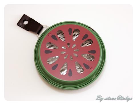 上下蓋にはグラスウールのネットが張られており、蚊取り線香を挟み浮いている状態になります。