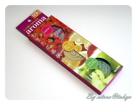 今回のアロマ蚊取り線香の香りはそこまで強くありませんが、フルーツの香りが感じられ面白いですね。