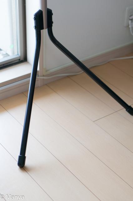 立てかけ式のこのスタンドは、足2点と壁1点の3点支持。