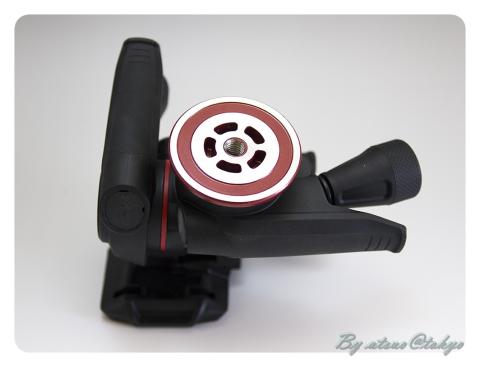 ギア雲台は一気にアングルを決められないと書きましたが、以前よりギアを開放する事で大きく動かす事の出来るモノがあったそうですが、本品では「レバーを握る・放す」だけで「ギアの解放・固定」が出来ます。