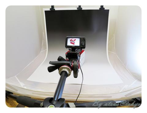 撮影ボックスを置くスペースの関係上、センターポールを水平にしたポジションでいつも撮影を行なっています。