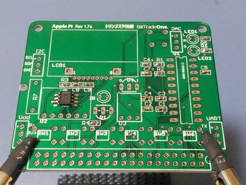 SMT部品を実装し終わったところ。