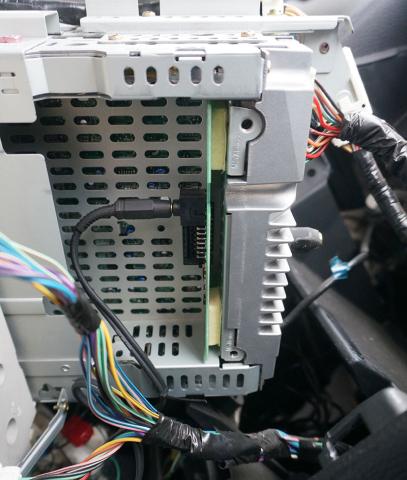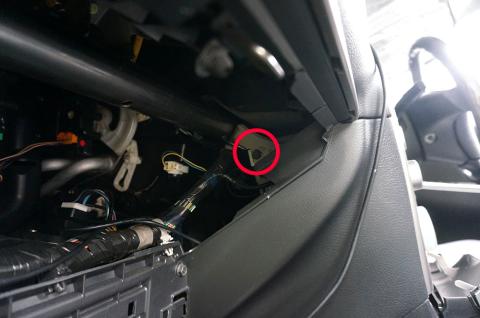オーディオパネルの下から差し込むようなカタチになるのでユニットを反時計周りに90度回転させて運転席側からつけてみた。