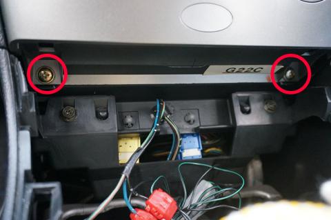 センターパネル下部のネジ2本を外す(上の水平に近い向きのネジ。最初自分は間違えて下の黒いネジを外してしまった)。あとは内張りはがしで引っ張るとずるずる出てくる。