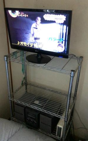 最近、寝ながらTVが見られるように「最上段」に「PCモニター兼TV」を置いた関係で、中段が現在は「空」になっています。