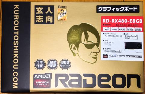ア○ク税がなんぼのもんじゃー! というわけで、ほぼリファレンスモデルに限っては大正義の玄人志向 RD-RX480-E8GB です。現時点では米尼から輸入するよりも安いんじゃないのかという声も。私はヨドバシカメラで買ったので10%ポイント還元適用の実質33,192円(消費税、送料込)です。
