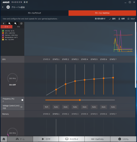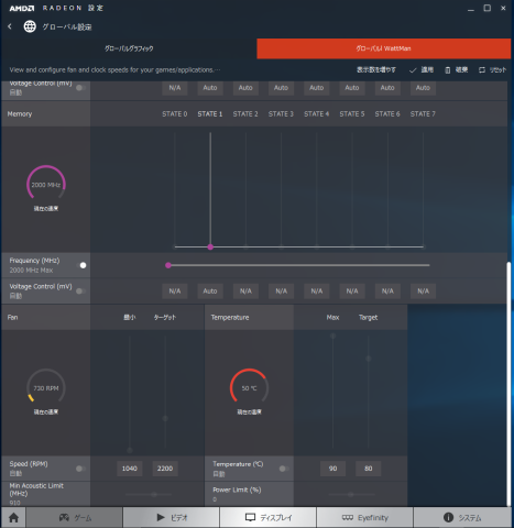 Radeon WattMan なるクロック、電圧、ファン回転、温度を制御するソフトが